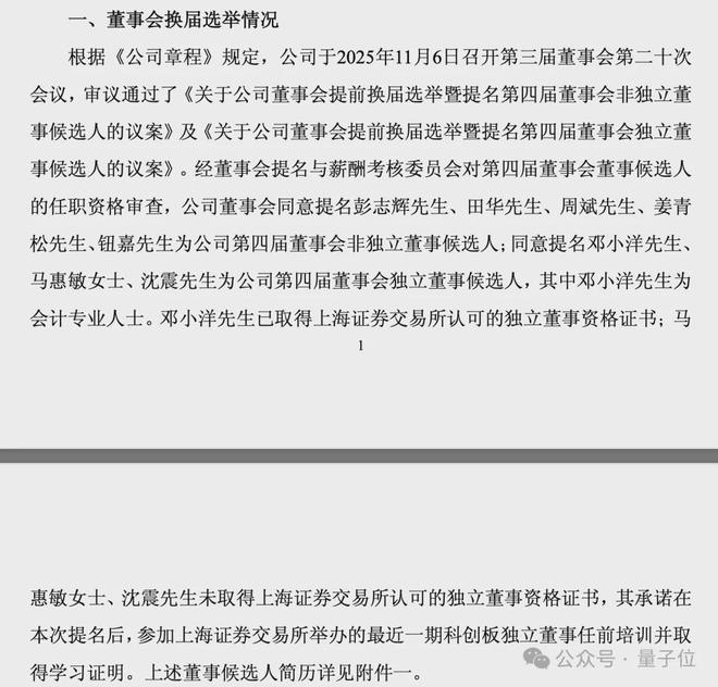与要约收购结果公告同时发布的,还有上纬新材关于董事会提前换届选举的公告 ,彭志辉(“稚晖君”)等八人为董事候选人。