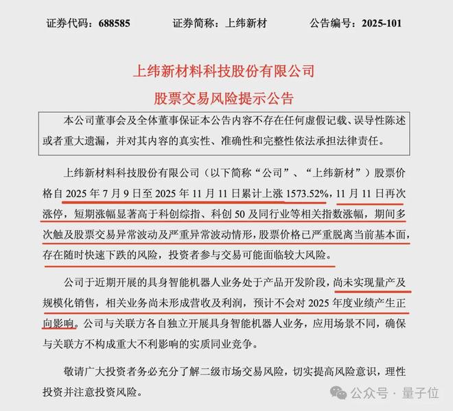 翻译一下就是:还没赚到钱、也没造出来、跟智元是独立开展的,但股价先涨了,有风险,需谨慎。