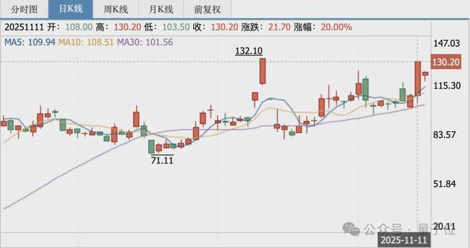 然而即便如此,上纬新材还是在今年7月从7块钱,涨到11月11号的130……