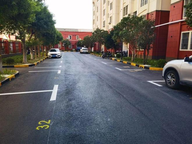 走进改造后的青龙公寓,公共空间的华丽转身让人眼前一亮。昔日破损积水的水泥路面已升级为平整美观的沥青路面,不仅行车噪音大幅减小,雨天积水问题也解决了,居民出行体验明显提升。结合改造重新科学规划的停车位,有效缓解了“停车难”,让小区交通秩序更井然。